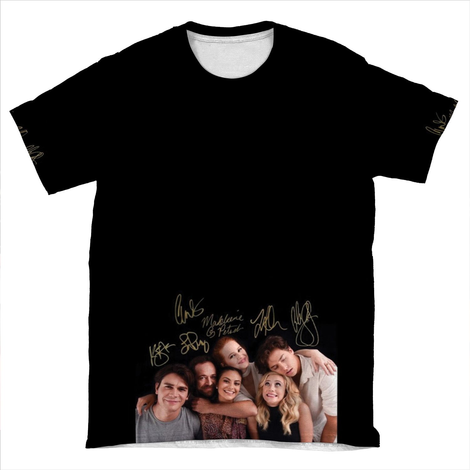 This Riverdale Cast Autographs AOP T-shirt Tee created to be a versatile and stylish companion for all your casual appearances. With its uniquely textured, thick, microfiber-knit fabric, this t-shirt bears a premium, soft feel that remains lightweight and highly breathable – the perfect combo for a hot day or layering.
