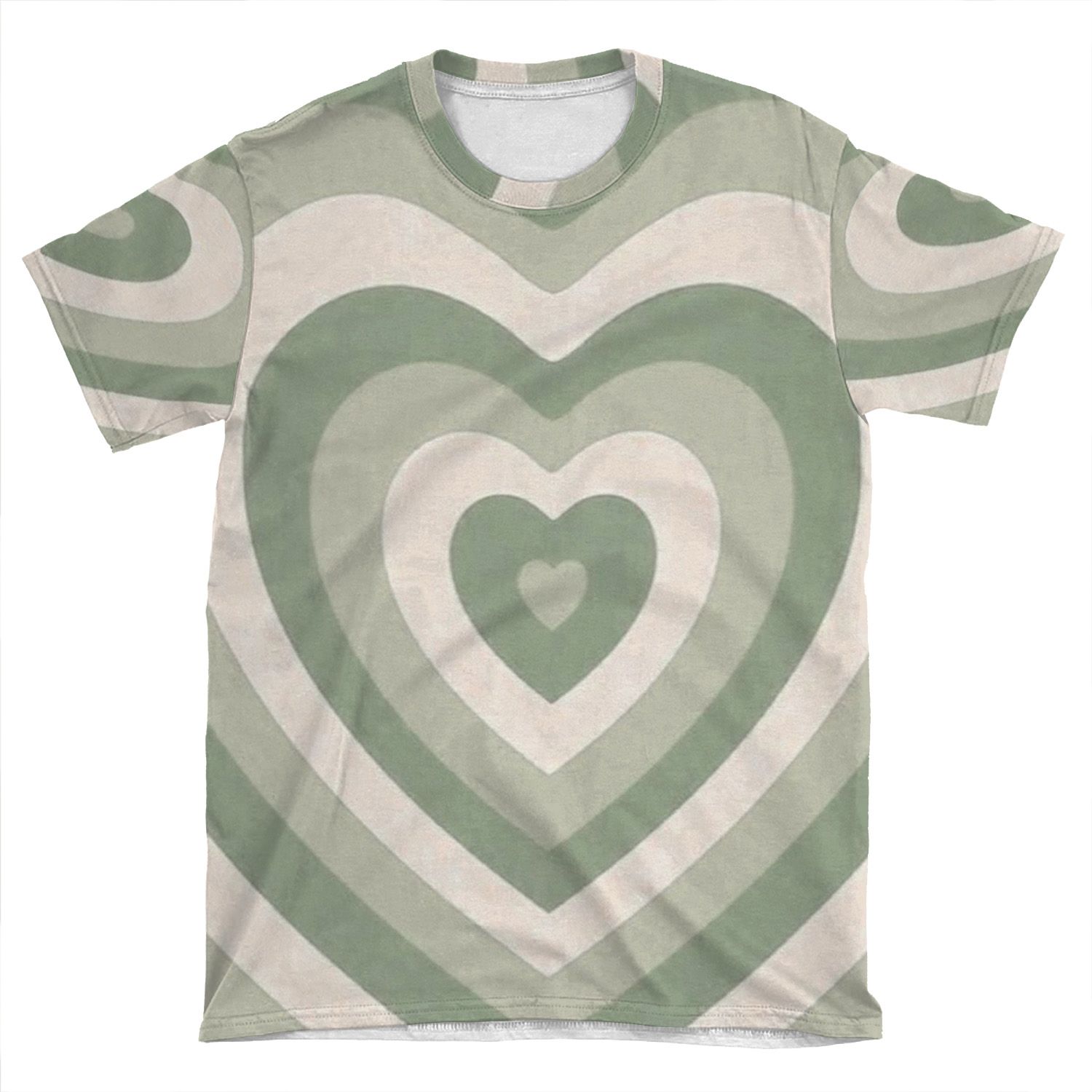 Sage Green Latte Heart AOP T-shirt Tee