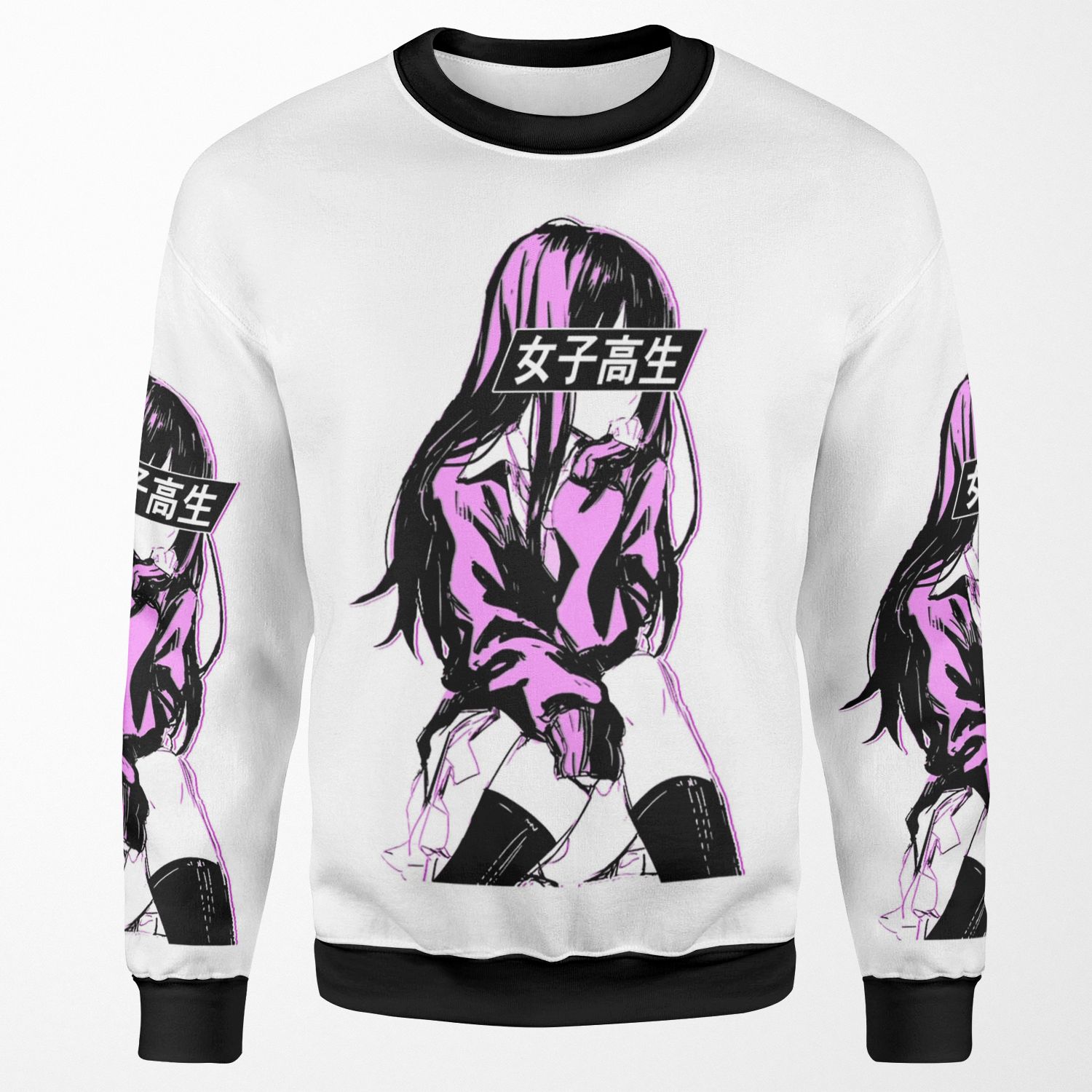 Schoolgirl Pink Sad Anime Japanese Aesthetic All-over-print Unisex Sweatshirt