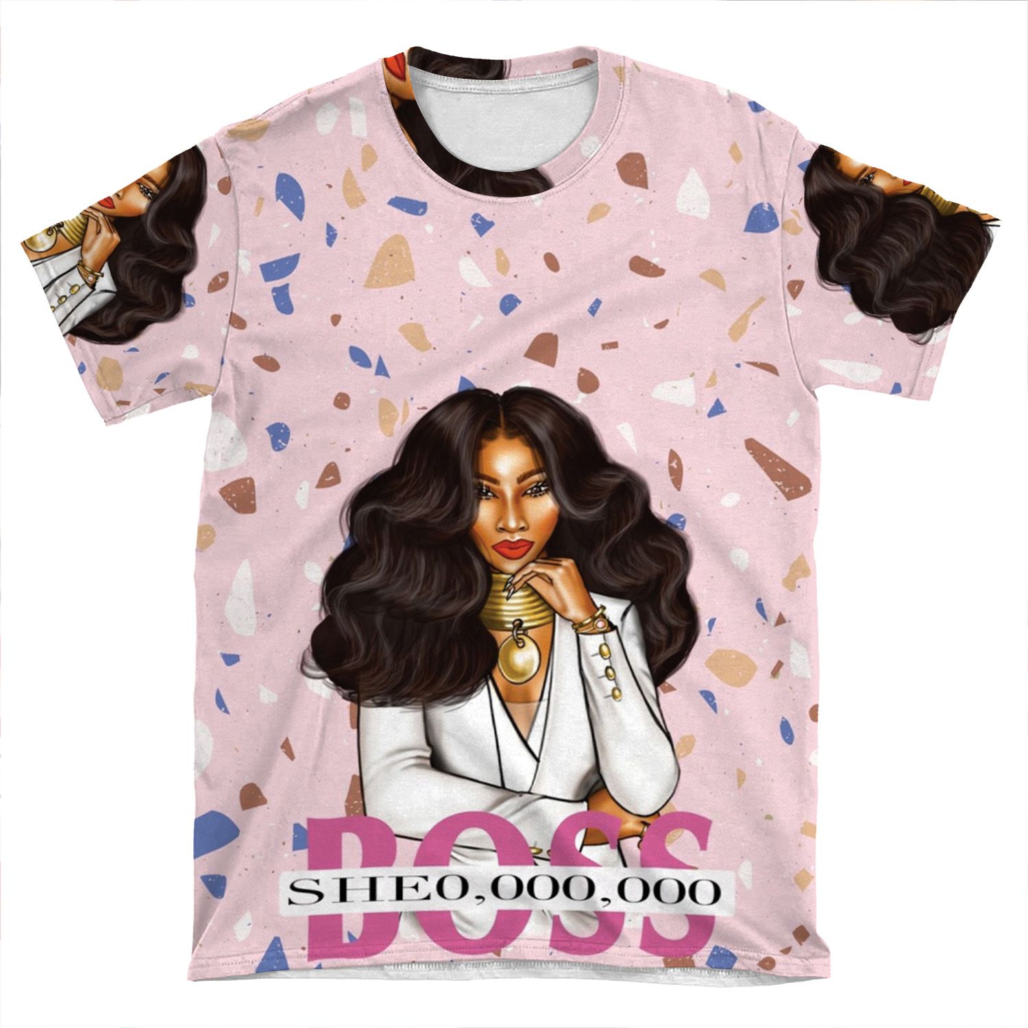 This She-Llionaire AOP T-shirt Tee created to be a versatile and stylish companion for all your casual appearances. With its uniquely textured, thick, microfiber-knit fabric, this t-shirt bears a premium, soft feel that remains lightweight and highly breathable – the perfect combo for a hot day or layering.