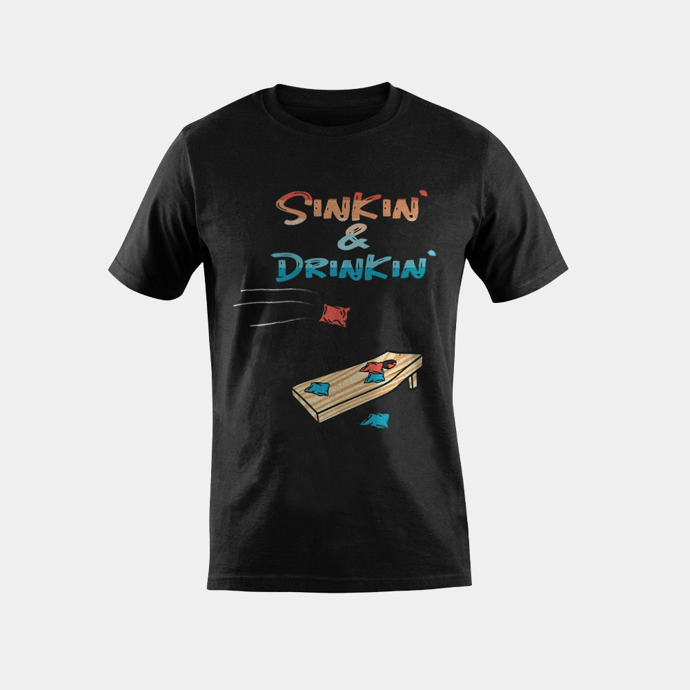 Material of Sinkin’ & Drinkin’ Retro Summer Gifts Cornhole T-Shirt