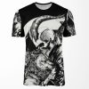 Skull And Floral Pattern All-over-print T-shirt