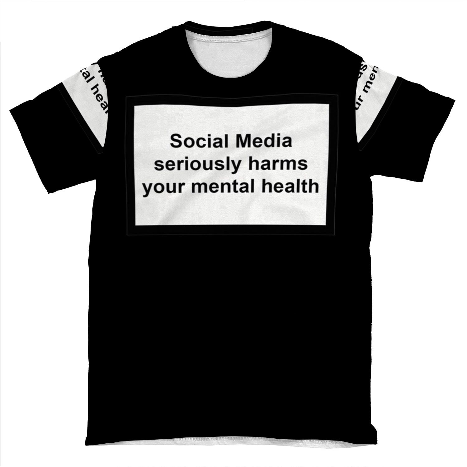 This Social Media Seriously Harms Your Mental Health 4 AOP T-shirt Tee created to be a versatile and stylish companion for all your casual appearances. With its uniquely textured, thick, microfiber-knit fabric, this t-shirt bears a premium, soft feel that remains lightweight and highly breathable – the perfect combo for a hot day or layering.