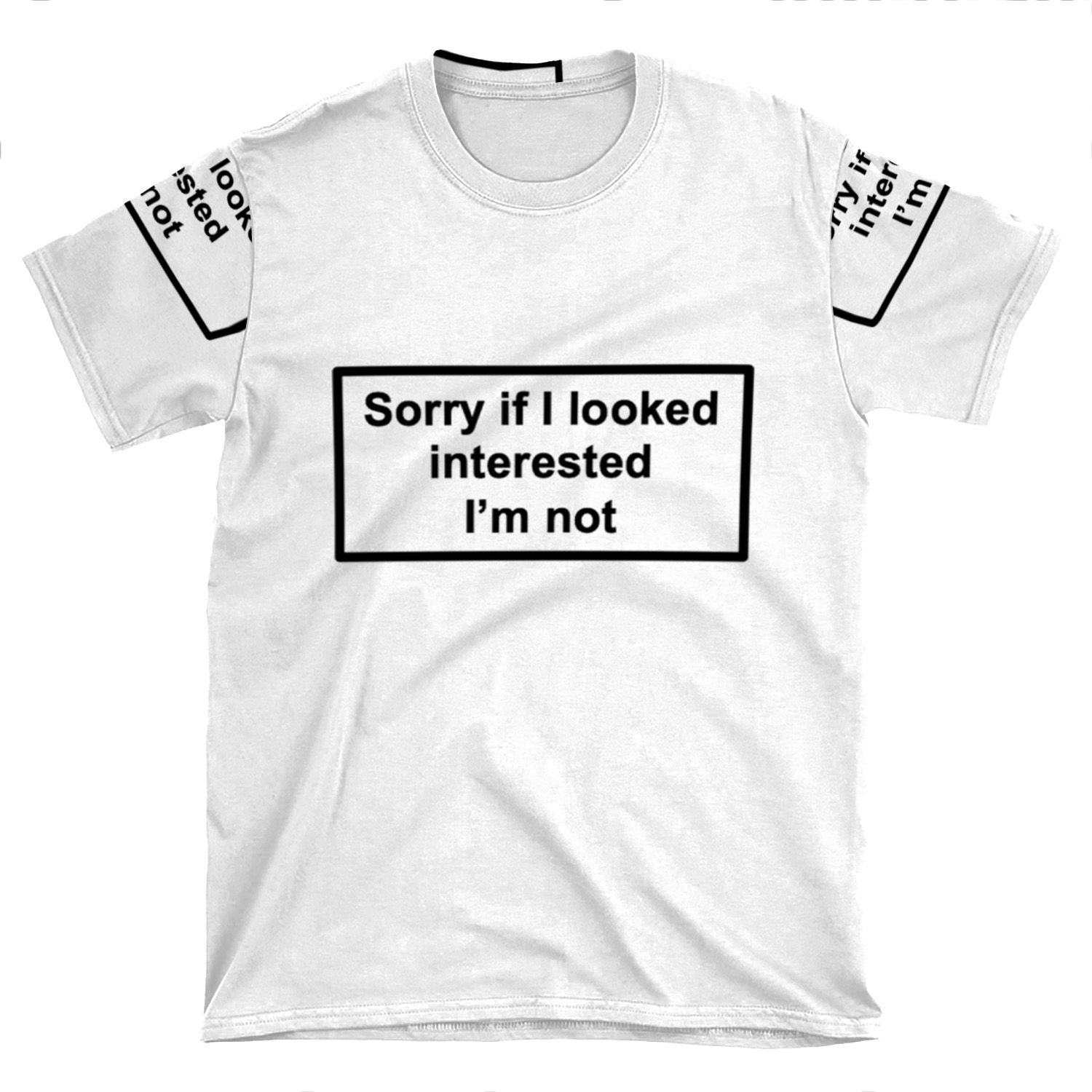 This Sorry If I Looked Interested I’m Not – Phone AOP T-shirt Tee created to be a versatile and stylish companion for all your casual appearances. With its uniquely textured, thick, microfiber-knit fabric, this t-shirt bears a premium, soft feel that remains lightweight and highly breathable – the perfect combo for a hot day or layering.