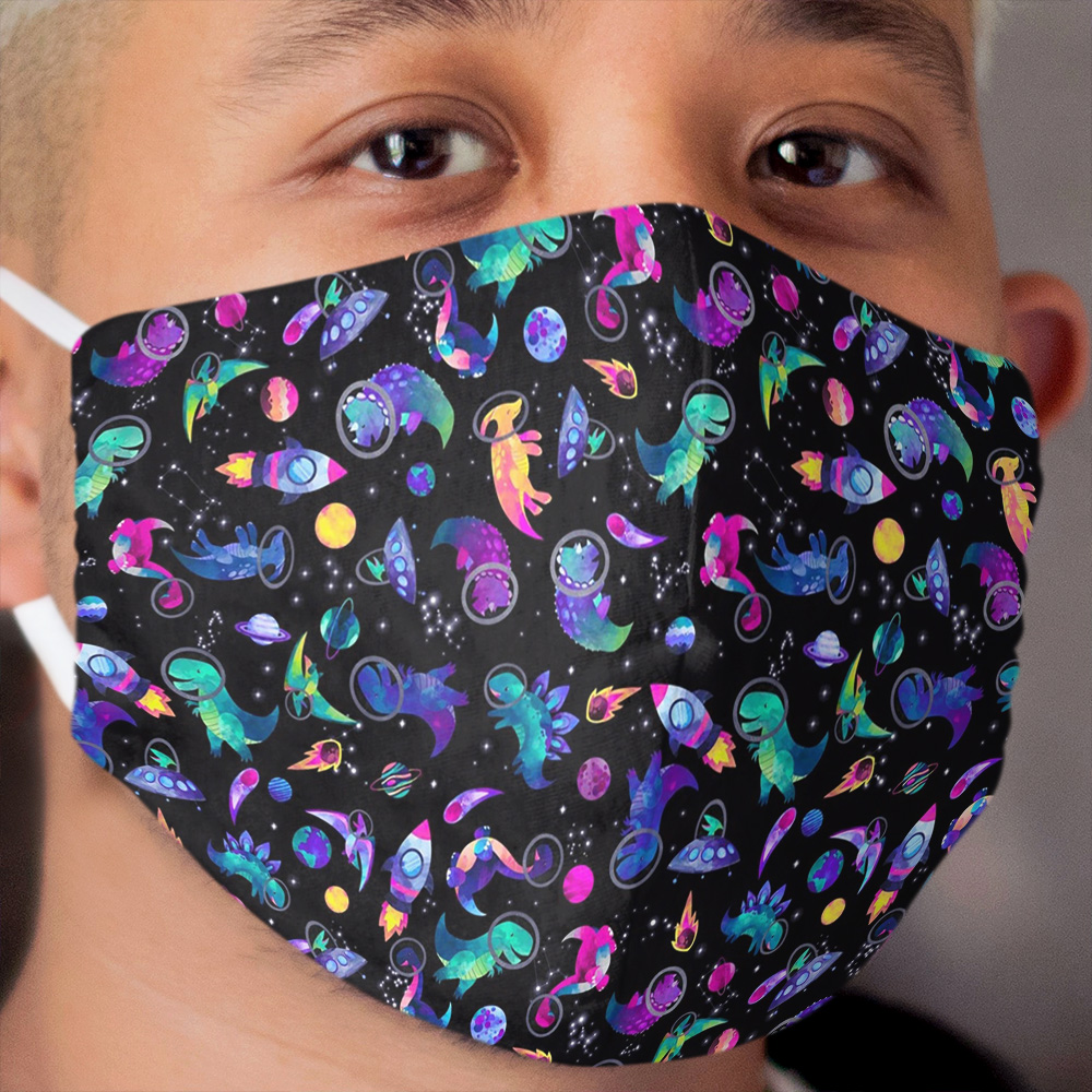 Space Dinosaur Astronauts Watercolor Pink Purple Pattern Cloth Face Mask