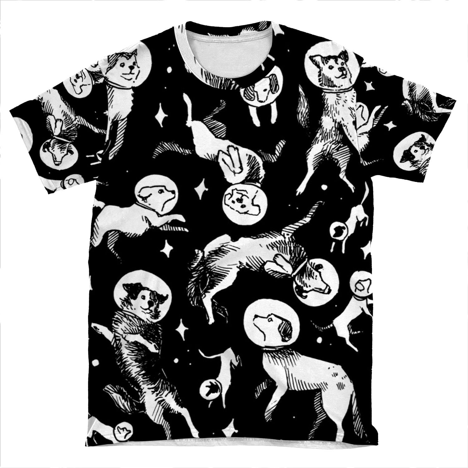 Space Dogs (Black Background) AOP T-shirt Tee