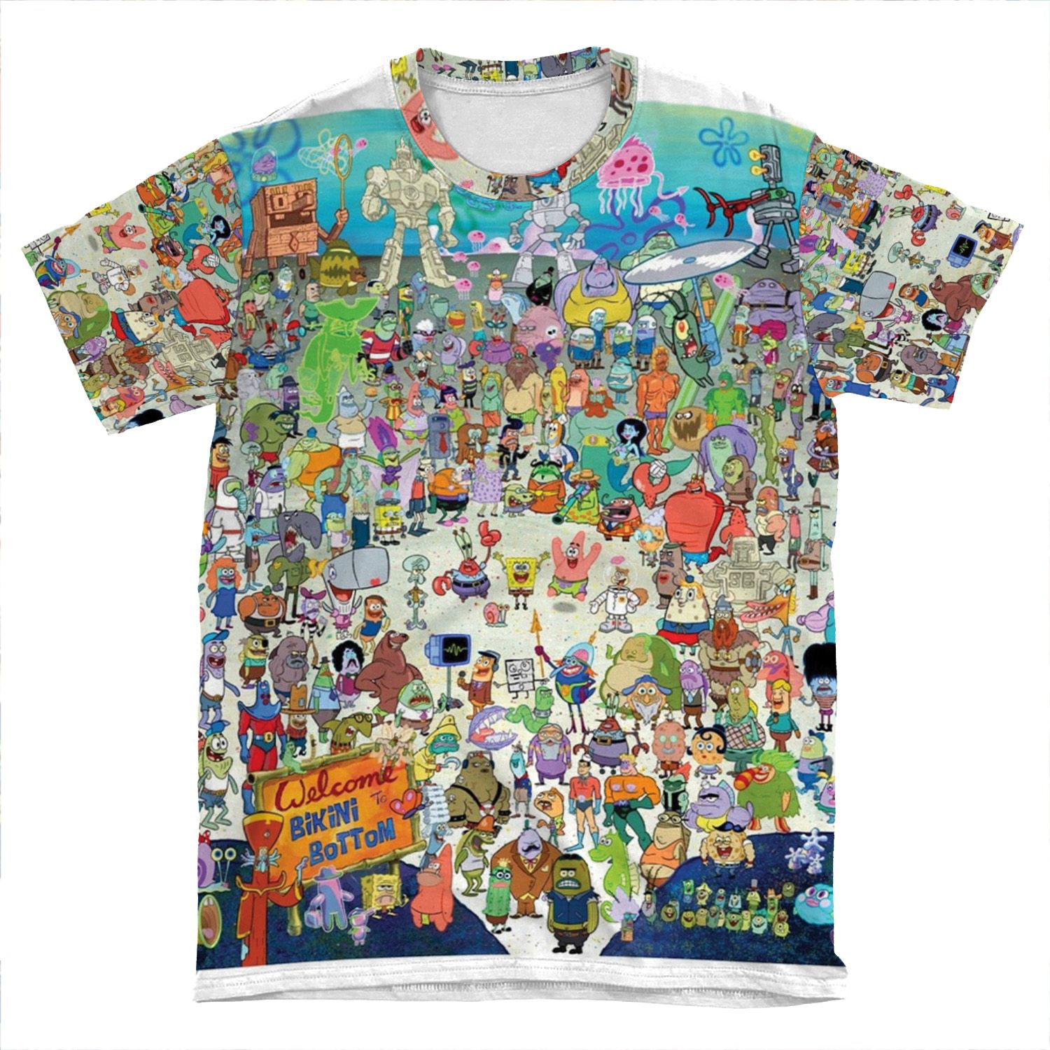 This Spongebob Cast AOP T-shirt Tee created to be a versatile and stylish companion for all your casual appearances. With its uniquely textured, thick, microfiber-knit fabric, this t-shirt bears a premium, soft feel that remains lightweight and highly breathable – the perfect combo for a hot day or layering.