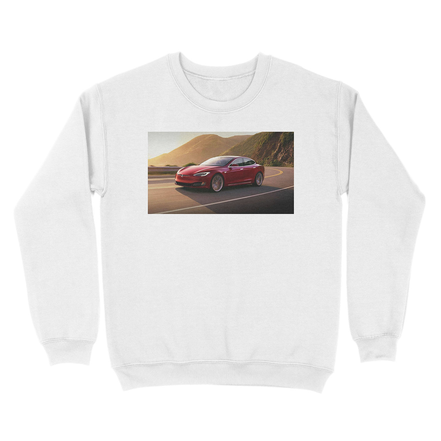 Material of Tesla Model S Unisex Crewneck Sweatshirt
