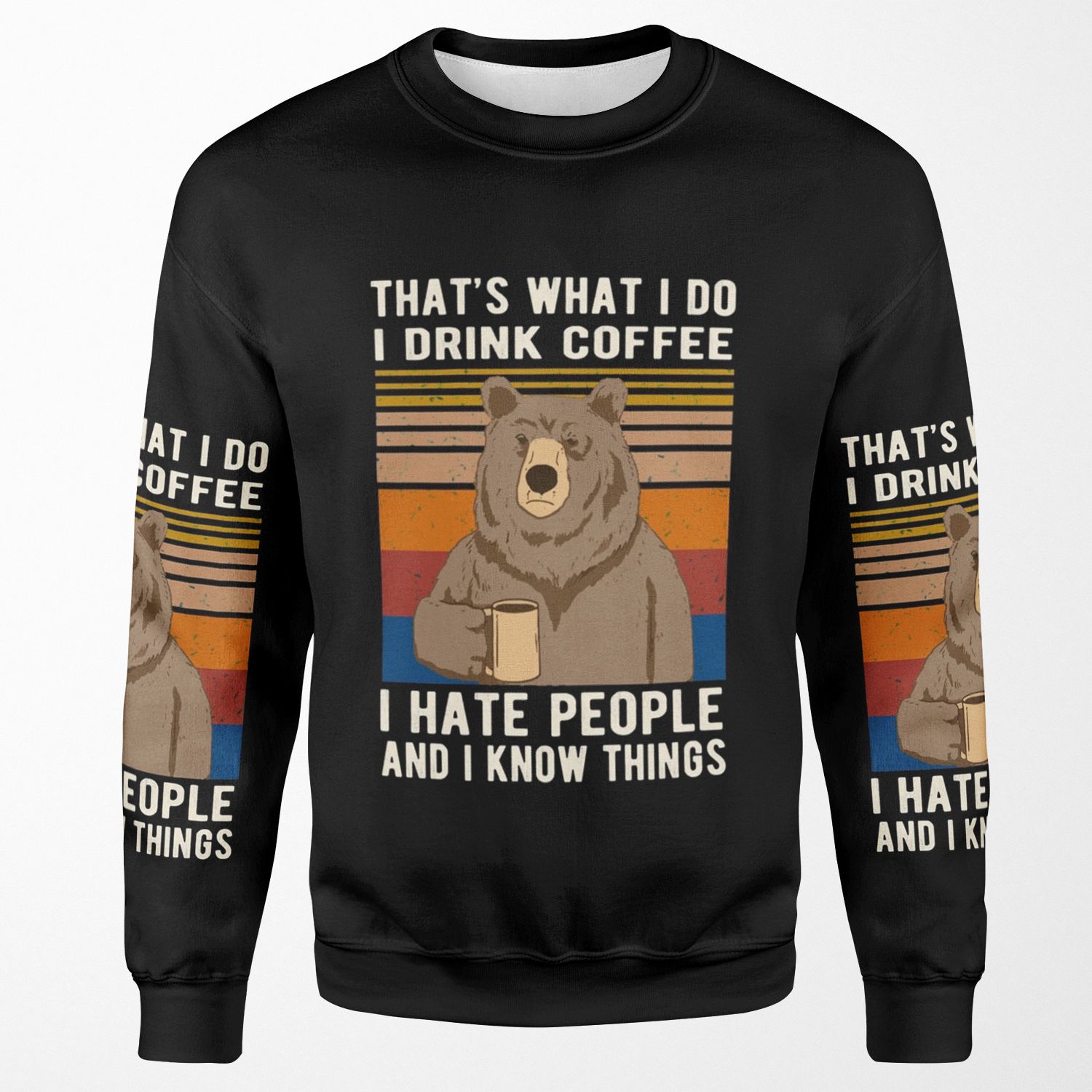 That S What I Do I Drink Coffee I Hate People And I Know Things Bear Drinking All-over-print Unisex Sweatshirt