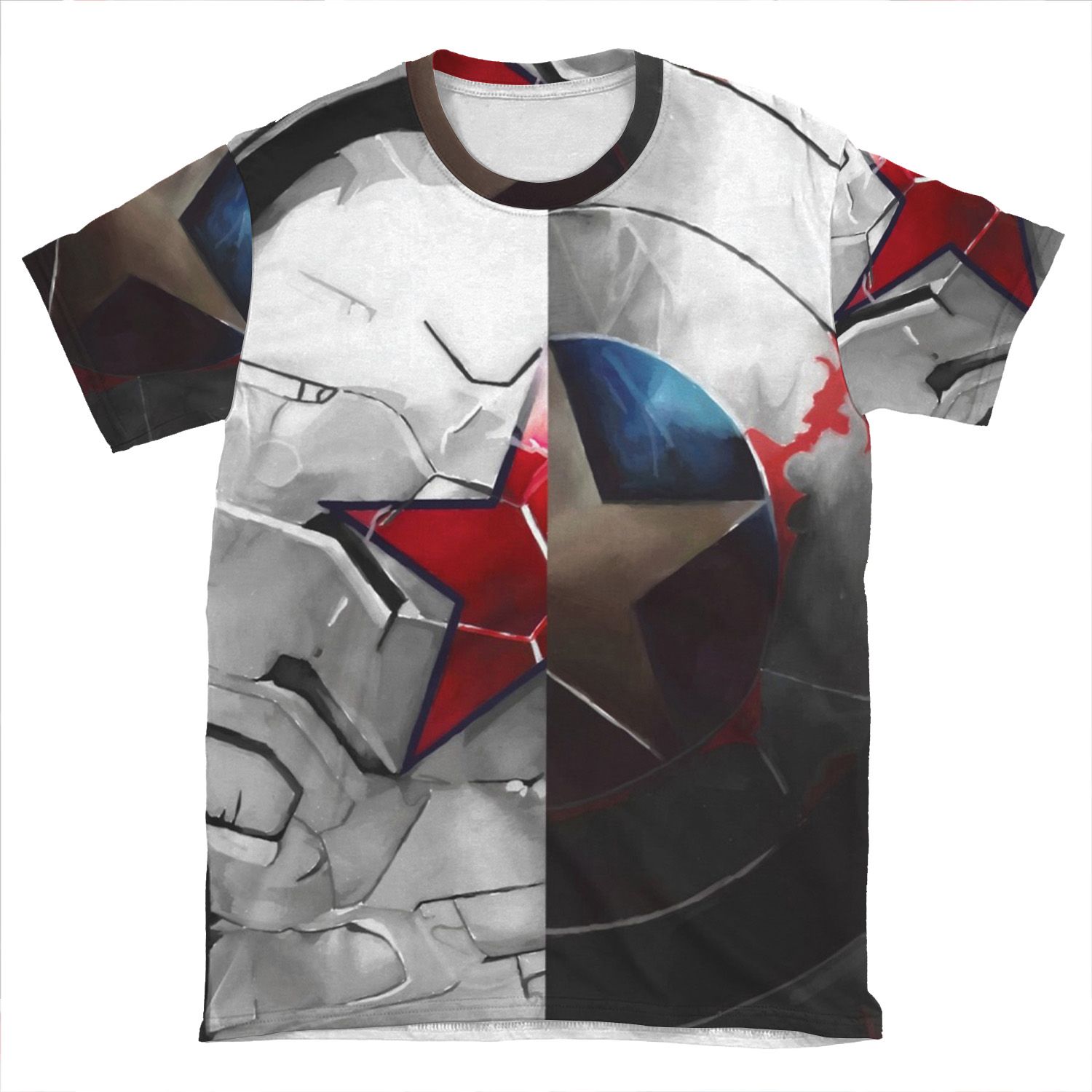 This The Shield And The Soldier AOP T-shirt Tee created to be a versatile and stylish companion for all your casual appearances. With its uniquely textured, thick, microfiber-knit fabric, this t-shirt bears a premium, soft feel that remains lightweight and highly breathable – the perfect combo for a hot day or layering.