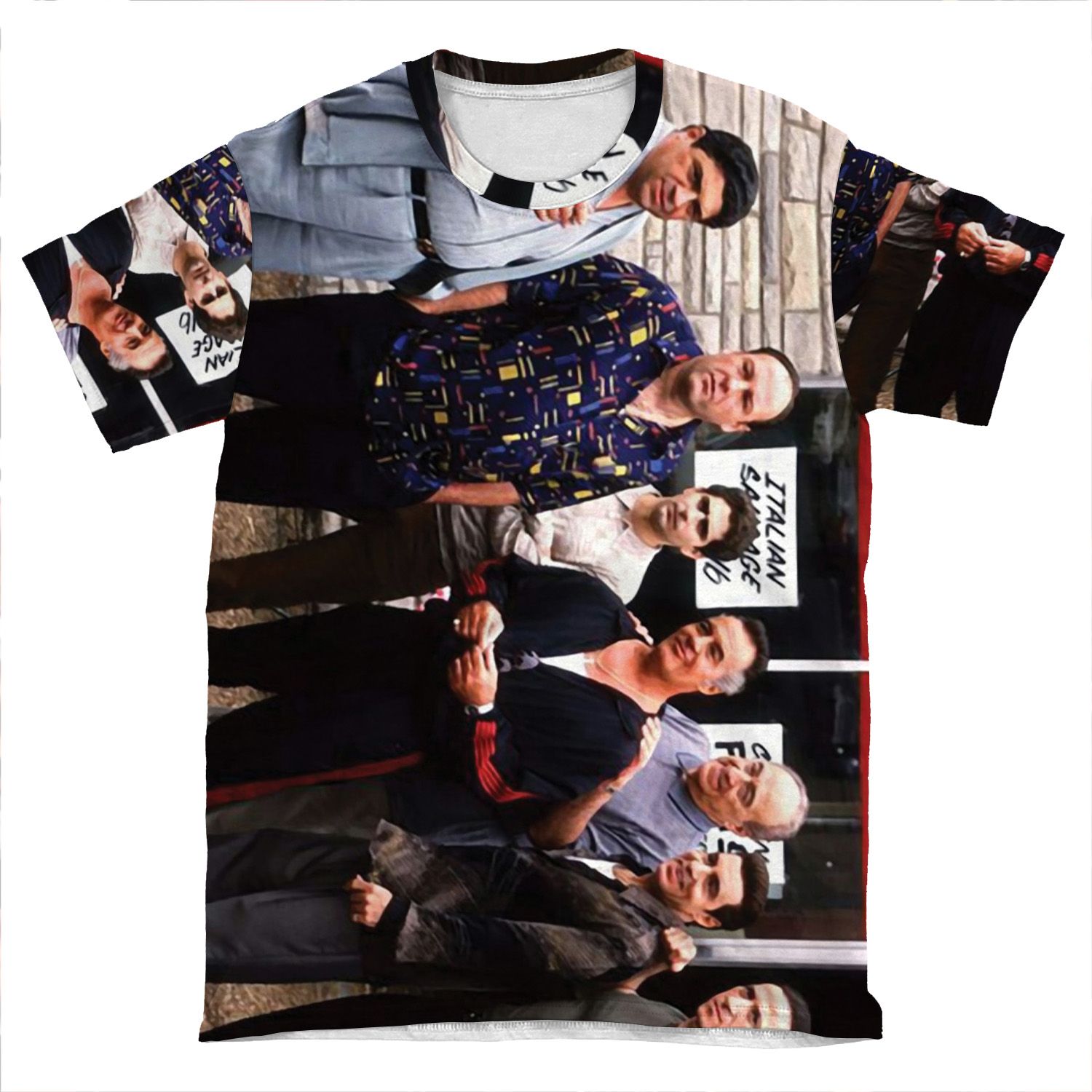 This The Sopranos Satriale’s Group Picture – Brush Strokes AOP T-shirt Tee created to be a versatile and stylish companion for all your casual appearances. With its uniquely textured, thick, microfiber-knit fabric, this t-shirt bears a premium, soft feel that remains lightweight and highly breathable – the perfect combo for a hot day or layering.