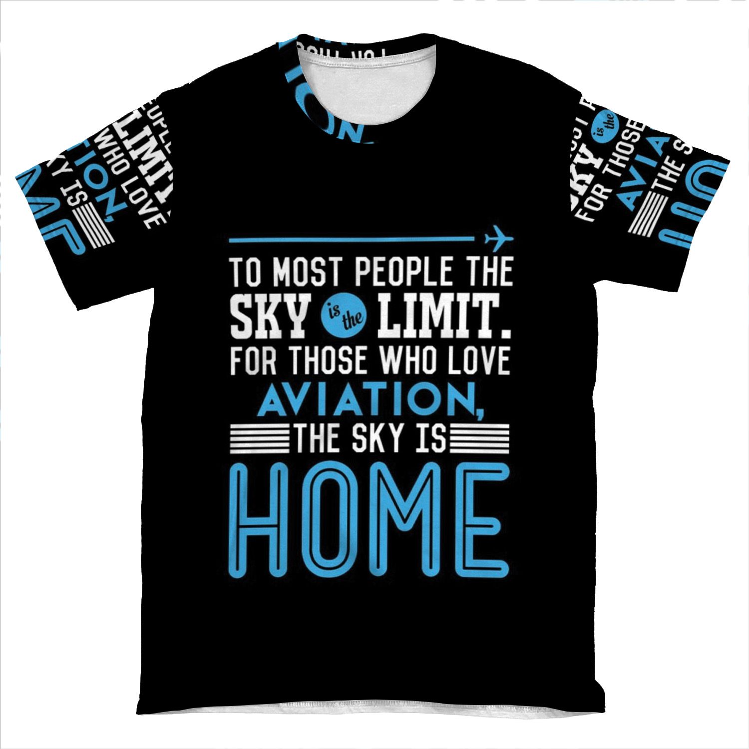 This To Most People The Sky Is The Limit. For Those Who Love Aviation The Sky Is Home AOP T-shirt Tee created to be a versatile and stylish companion for all your casual appearances. With its uniquely textured, thick, microfiber-knit fabric, this t-shirt bears a premium, soft feel that remains lightweight and highly breathable – the perfect combo for a hot day or layering.