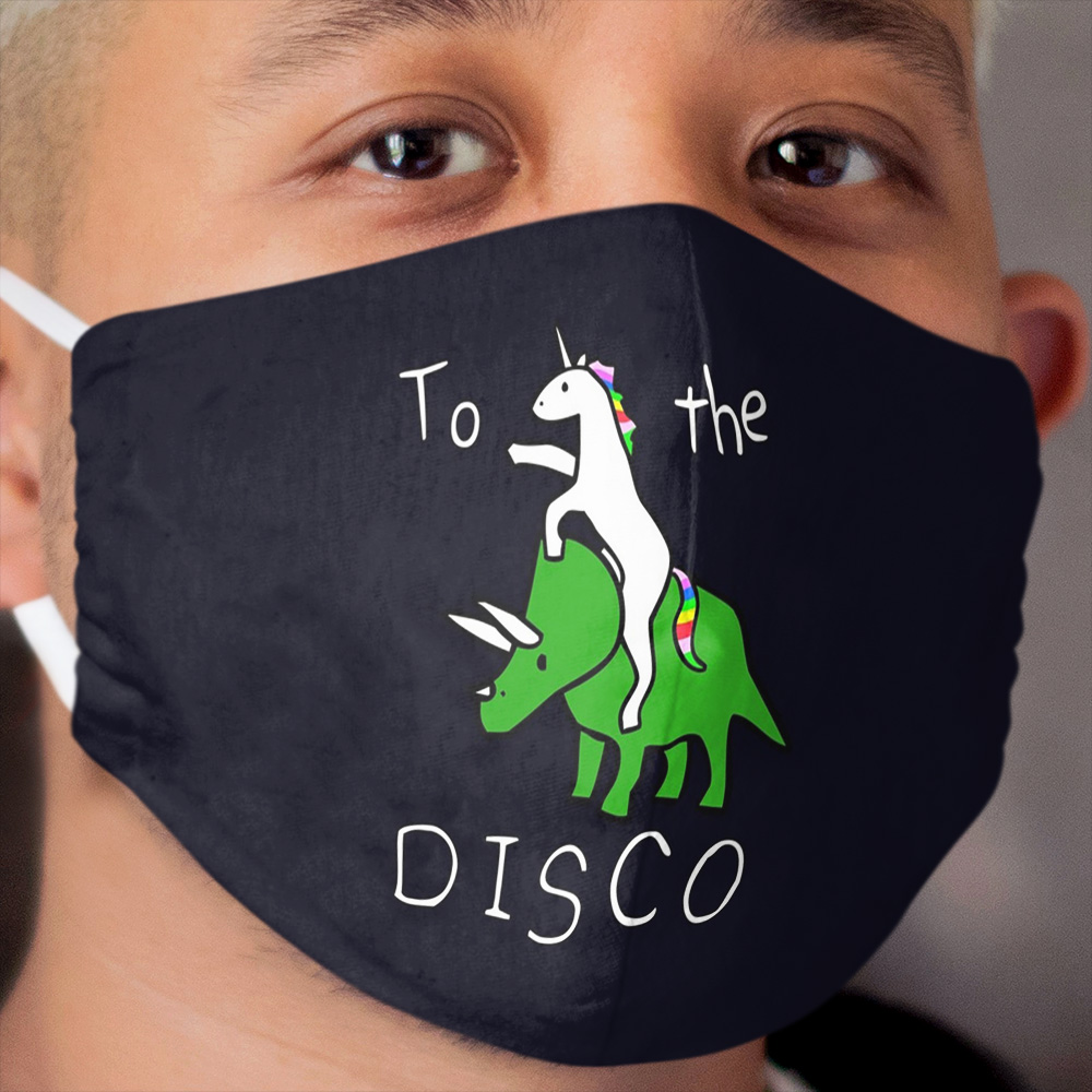 To The Disco (white text) Unicorn Riding Triceratops Cloth Face Mask