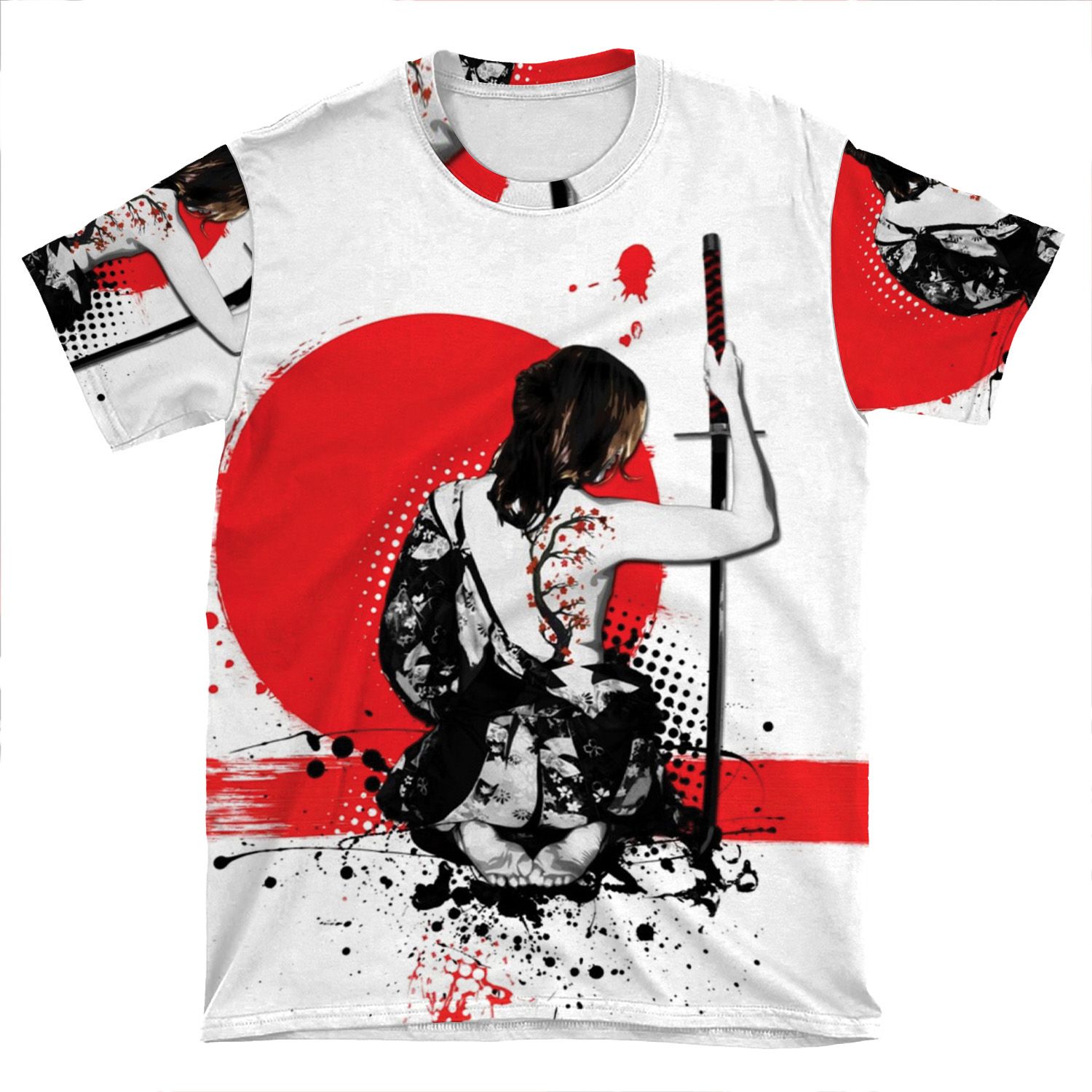 This Trash Polka – Female Samurai AOP T-shirt Tee created to be a versatile and stylish companion for all your casual appearances. With its uniquely textured, thick, microfiber-knit fabric, this t-shirt bears a premium, soft feel that remains lightweight and highly breathable – the perfect combo for a hot day or layering.