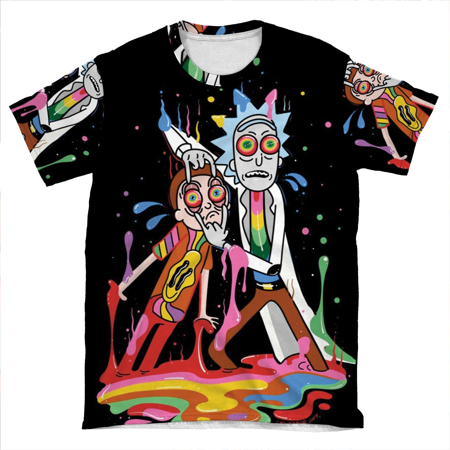 This Trippy Rick & Morty AOP T-shirt Tee created to be a versatile and stylish companion for all your casual appearances. With its uniquely textured, thick, microfiber-knit fabric, this t-shirt bears a premium, soft feel that remains lightweight and highly breathable – the perfect combo for a hot day or layering.