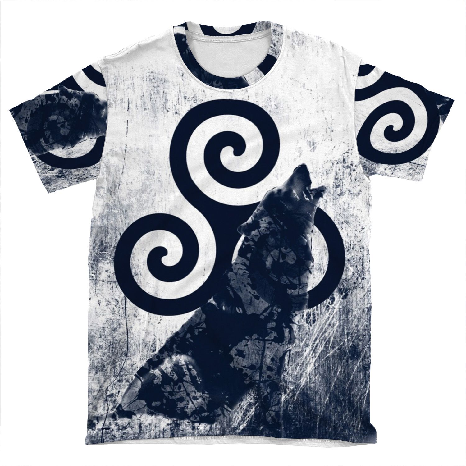 This Triskele And Wolf AOP T-shirt Tee created to be a versatile and stylish companion for all your casual appearances. With its uniquely textured, thick, microfiber-knit fabric, this t-shirt bears a premium, soft feel that remains lightweight and highly breathable – the perfect combo for a hot day or layering.