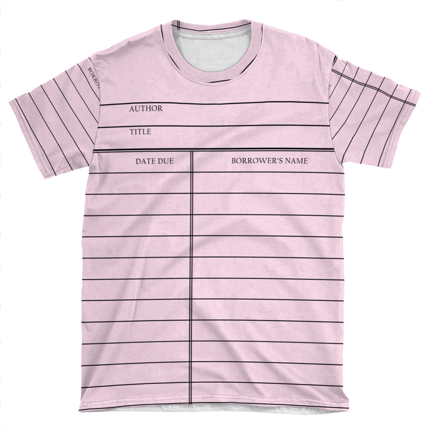 Vintage Library Card – Pink AOP T-shirt Tee