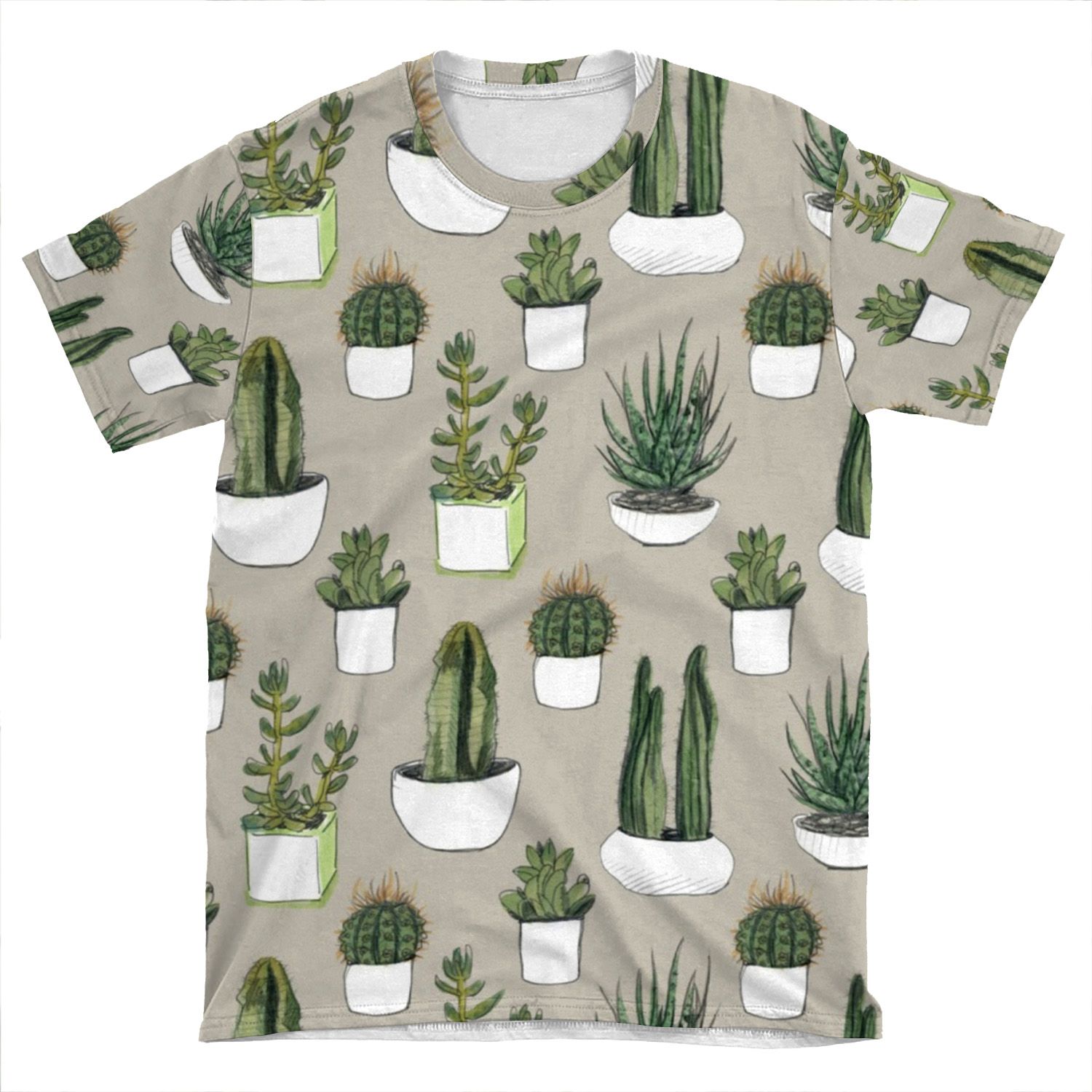 This Watercolour Cacti & Succulents – Beige AOP T-shirt Tee created to be a versatile and stylish companion for all your casual appearances. With its uniquely textured, thick, microfiber-knit fabric, this t-shirt bears a premium, soft feel that remains lightweight and highly breathable – the perfect combo for a hot day or layering.