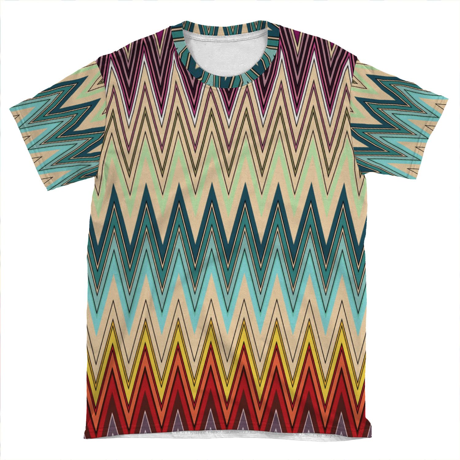 Zig Zag Striped Pattern AOP T-shirt Tee